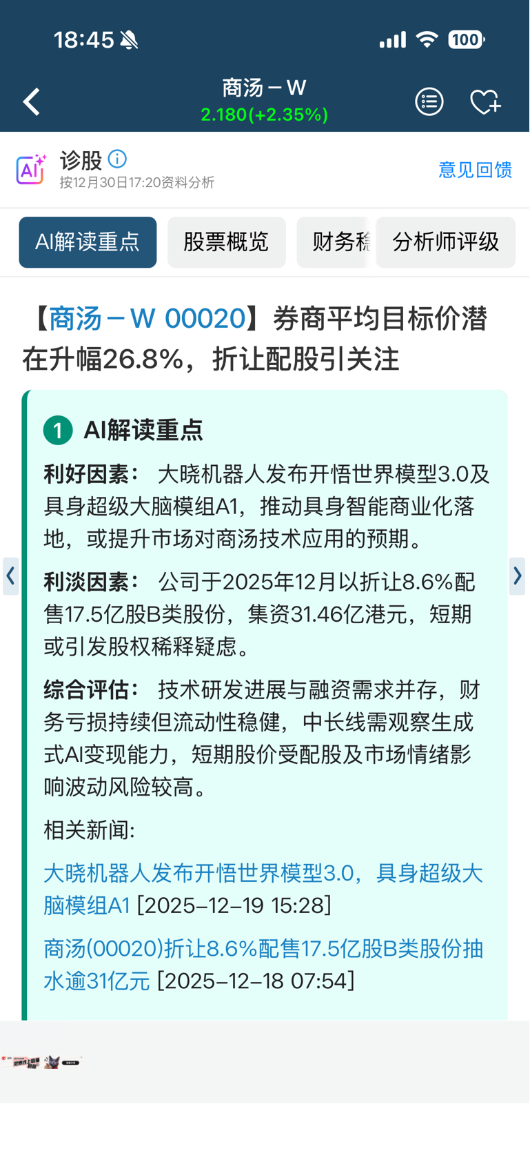 商汤1.80融资31亿元后股价1.85→2.20,有望突破,今有大笔交易