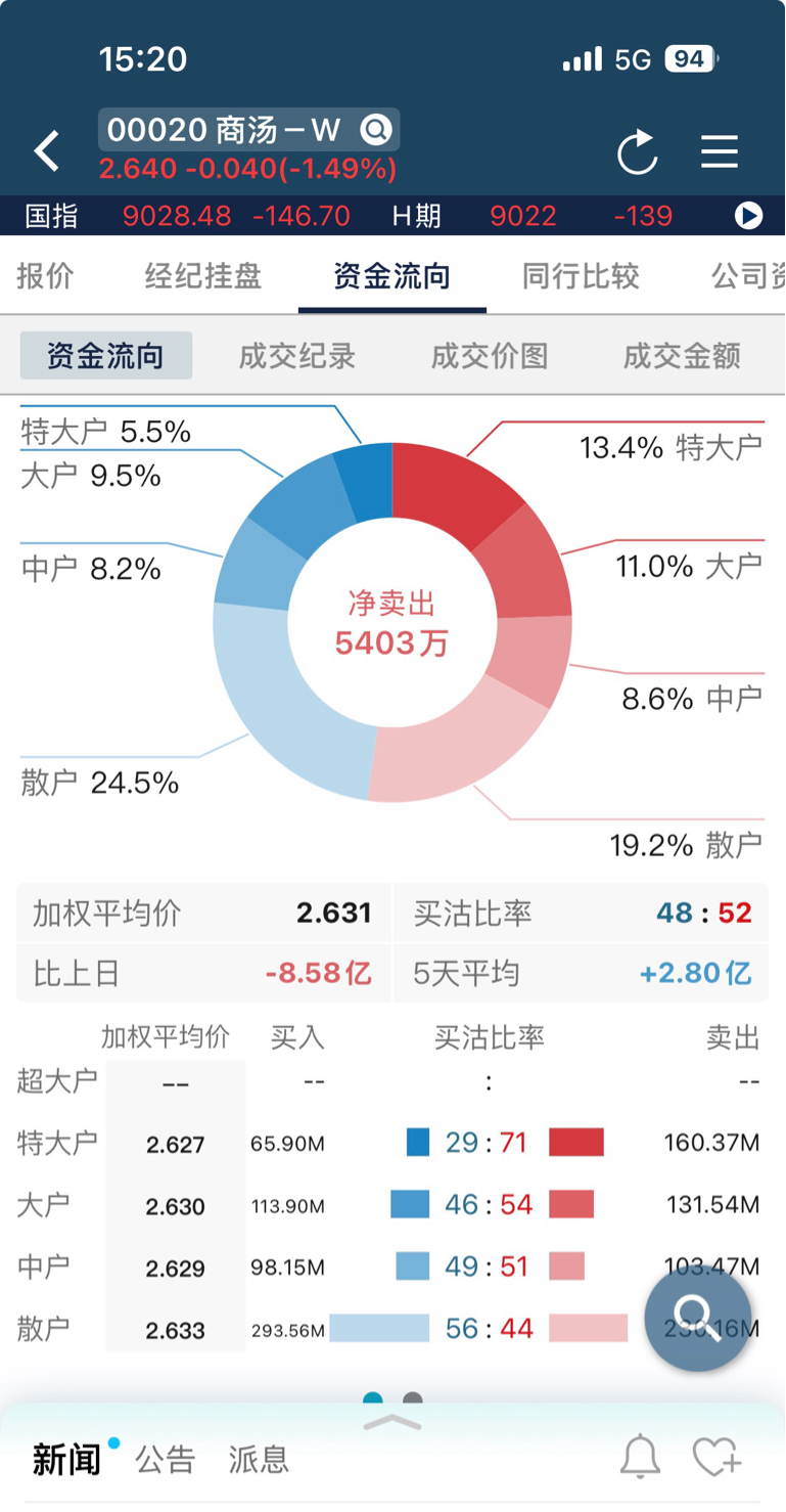 $商汤-W(HK|00020)$ 净卖出5000+万,股价下跌0.04