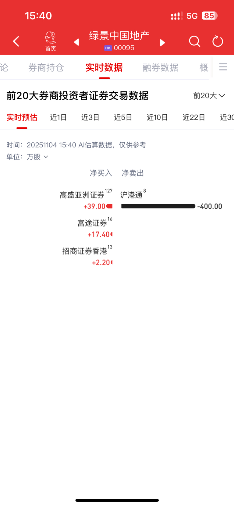 $绿景中国地产(HK|00095)$ 哪个韭菜通送的筹码