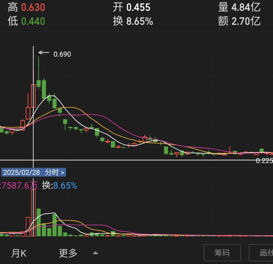 20250228日这一天,换手8.65%,成交量4.84亿,成交金额2.7亿,退