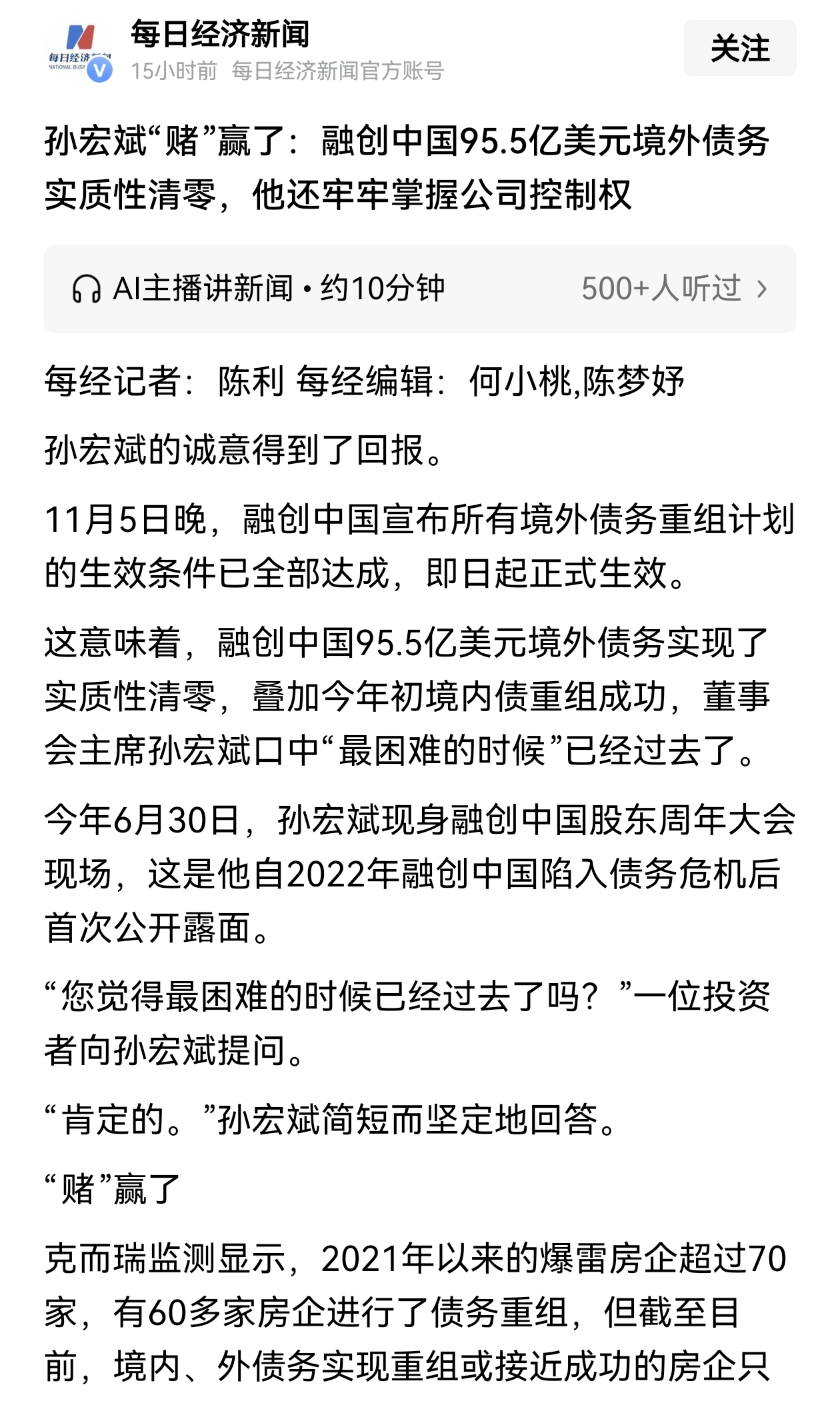 $绿景中国地产(HK|00095)$ 1、白石洲明年一月顺利交楼;2、处理好境外债务;3、中国房地产复苏。 1是100%没问题,2现在看来,经济形势发生变化后,债权人的预期降低,2也很有希望的;剩下就是3了,3目前看来遥遥无期