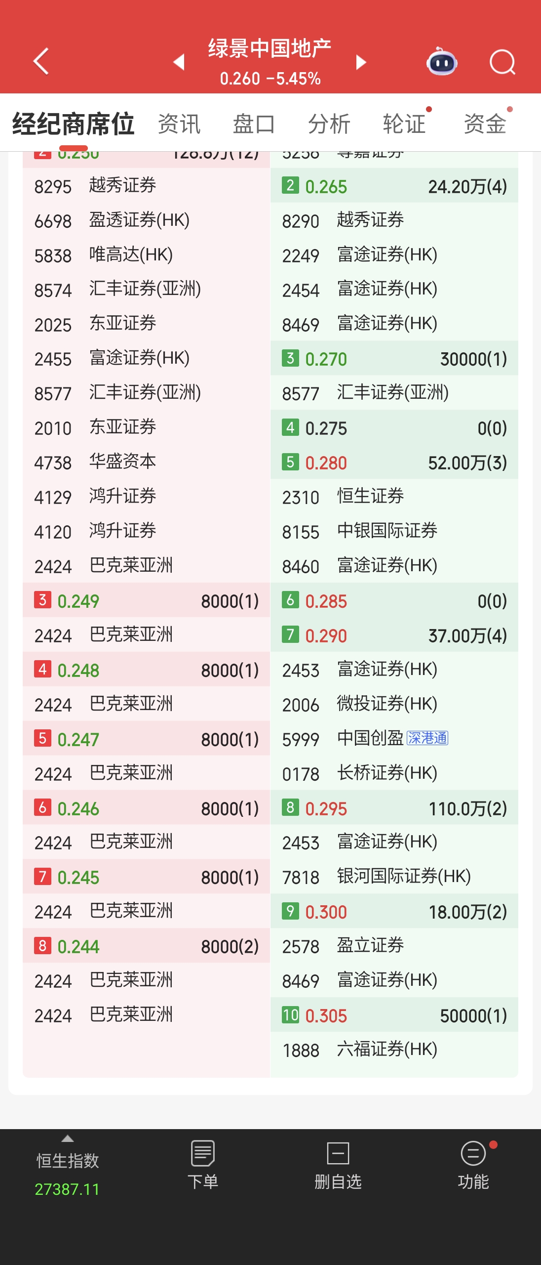 $绿景中国地产(HK|00095)$ 芭莱克为何要放一连排的8000股买单