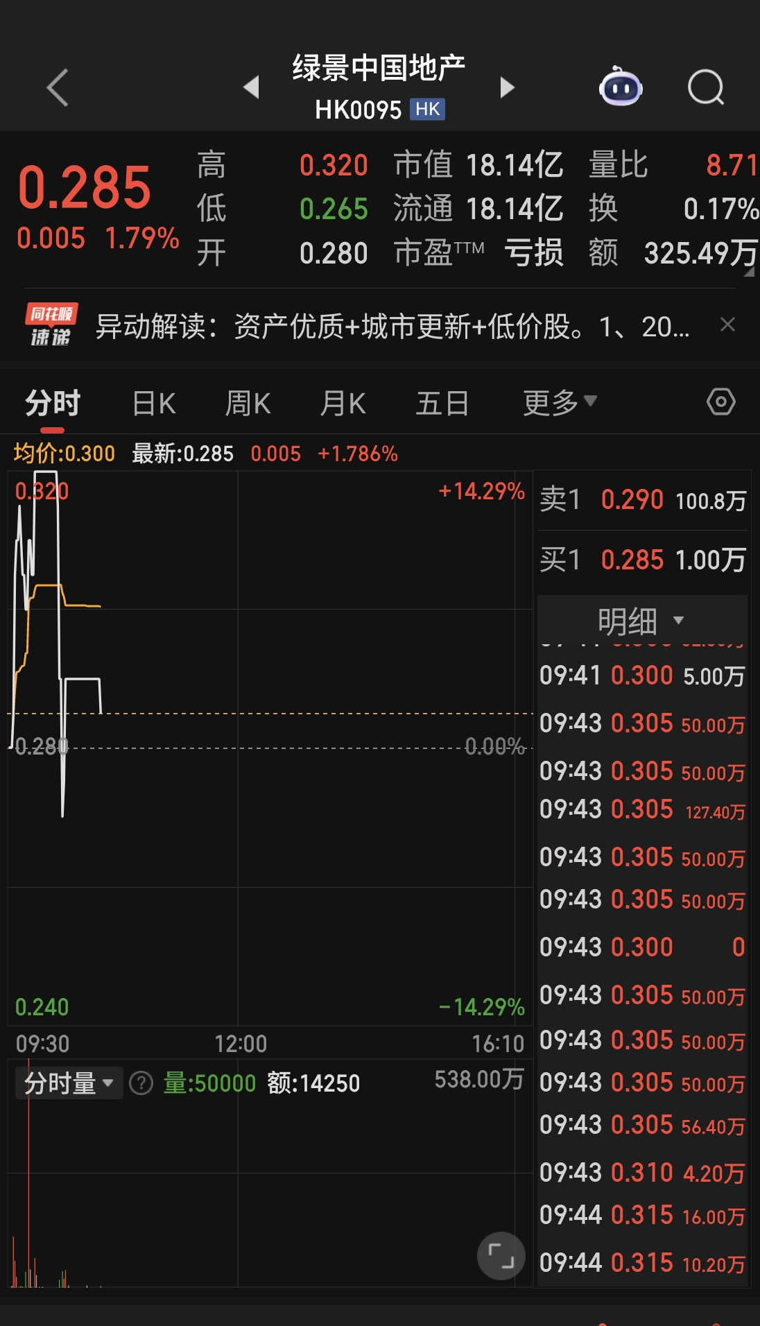 $绿景中国地产(HK|00095)$ 空头500万一口吃掉