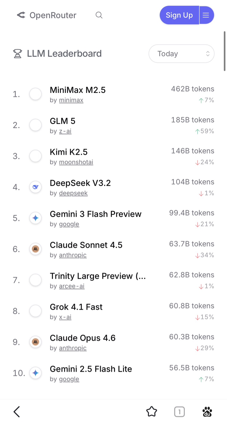 $MINIMAX-WP(HK|00100)$ M2.5在open router用量爆发式增长, 断崖式领先