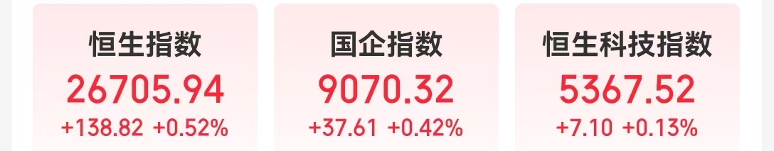 截至收盘,恒生指数低开高走收涨0.52%,恒生科技指数涨0.13%。