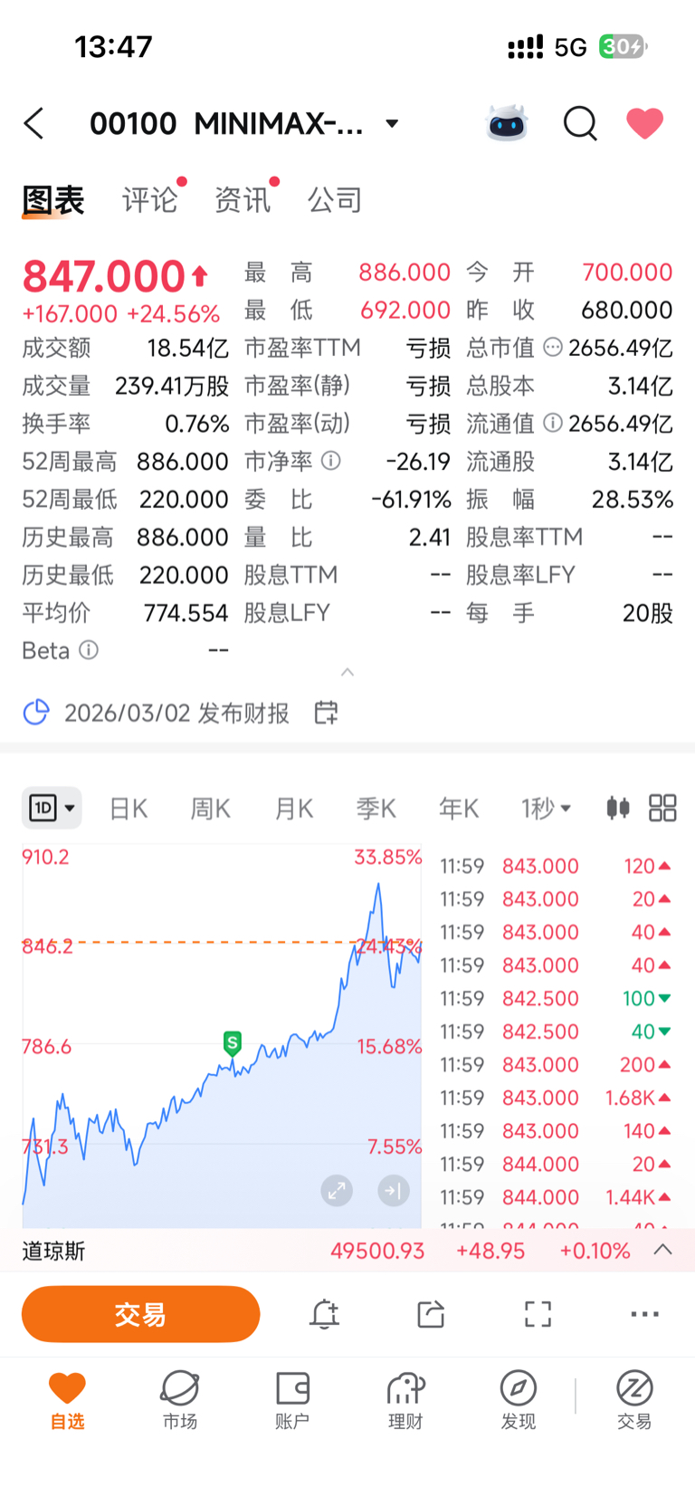 $MINIMAX-WP(HK|00100)$ 早上15%就卖了, 不敢格局, 少挣了10个点, 落袋为安, 马年再战。