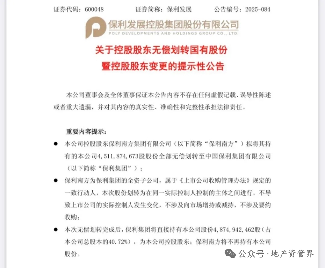 保利发展将由中国保利集团有限公司(简称“保利集团”)的孙公司变为子公司。划转后,
