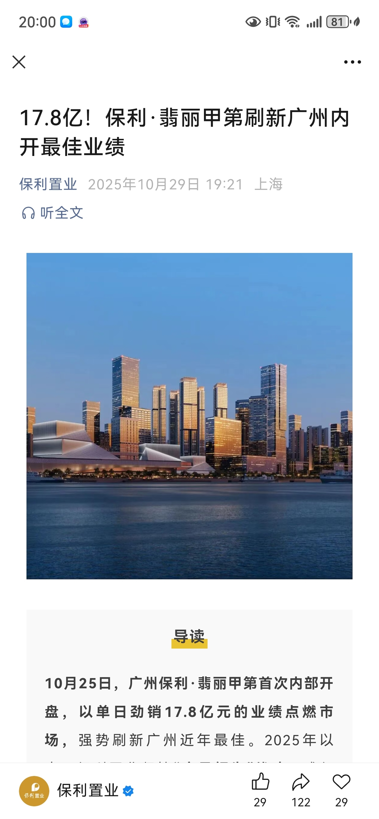 $保利置业集团(HK|00119)$ 看看保利置业集团销售很猛,龙光、万科和融创都要向他学习!$龙光集团(HK|03380)$ $融创中国(HK|01918)$ ,准备继续加仓保利置业集团!