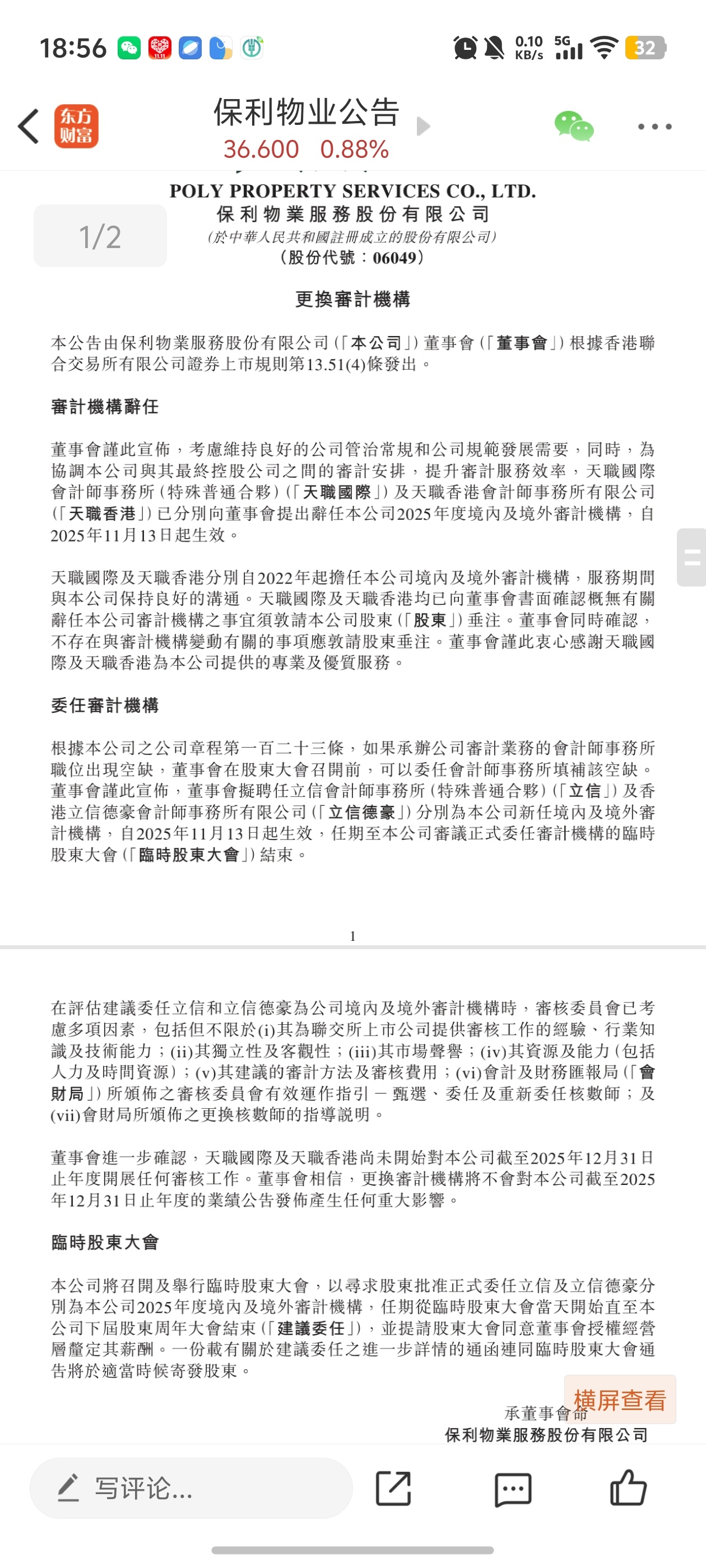 $保利置业集团(HK|00119)$ $保利发展(SH600048)$ $保利物业(HK|06049)$ 保利系现在动作挺频繁,保利南方将保利发展的股份划转保利集团,新总经理空降,保利置业,保利物业和保利发展统一审计机构