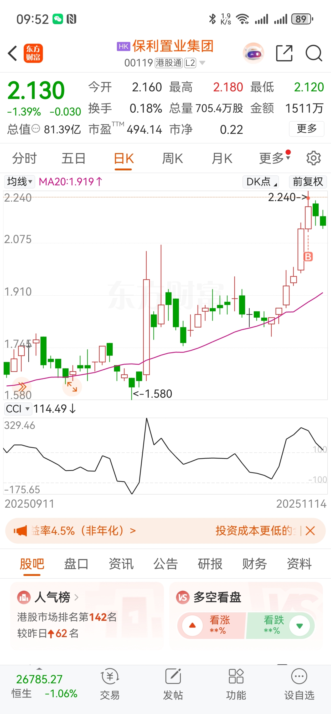 $保利置业集团(HK|00119)$ 山顶站岗。