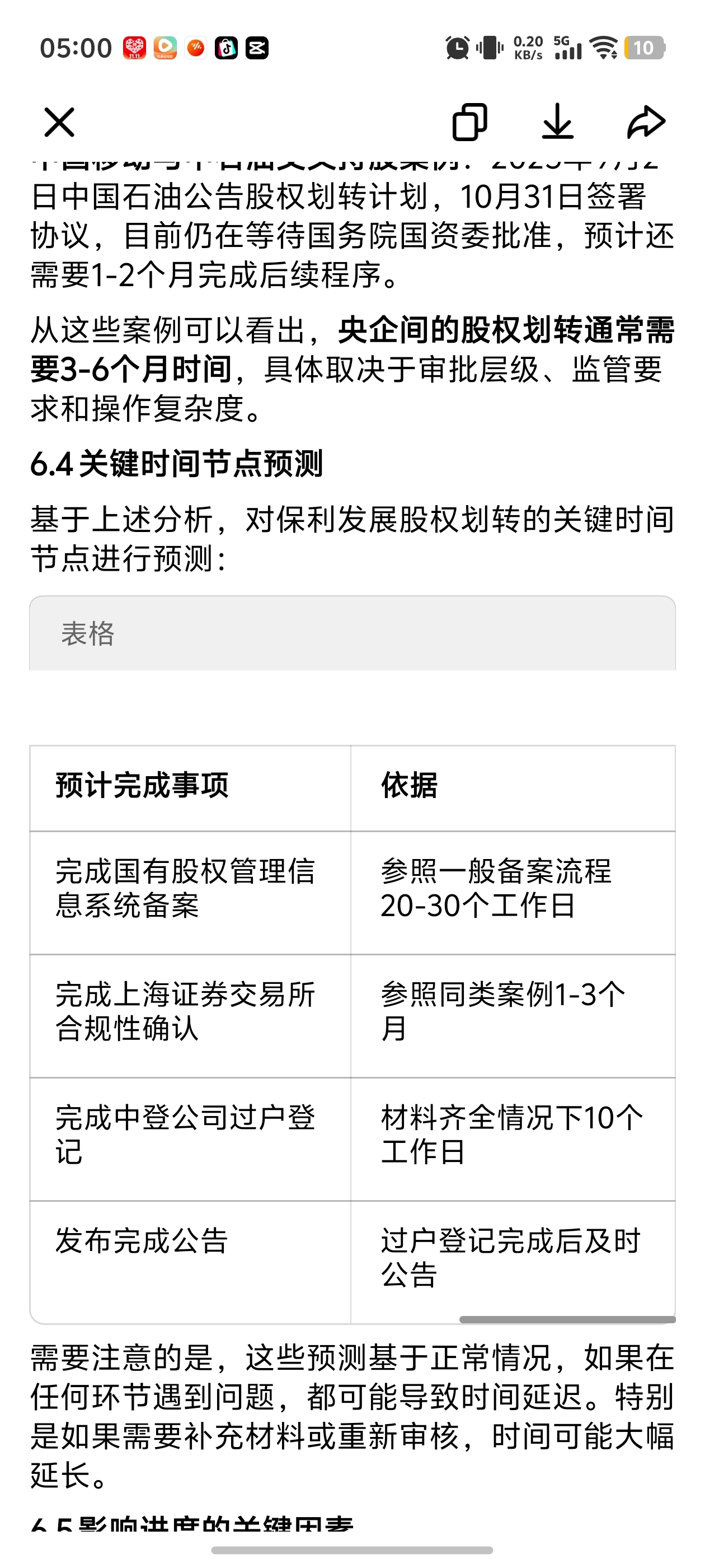 1. 国有股权管理信息系统备案:根据一般经验,国资备案程序通常需要15-20个工作日 。考虑到此次划转涉及的股份数量巨大(45.12亿股),且需要准备大量材料,预计需要20-30个工作日。