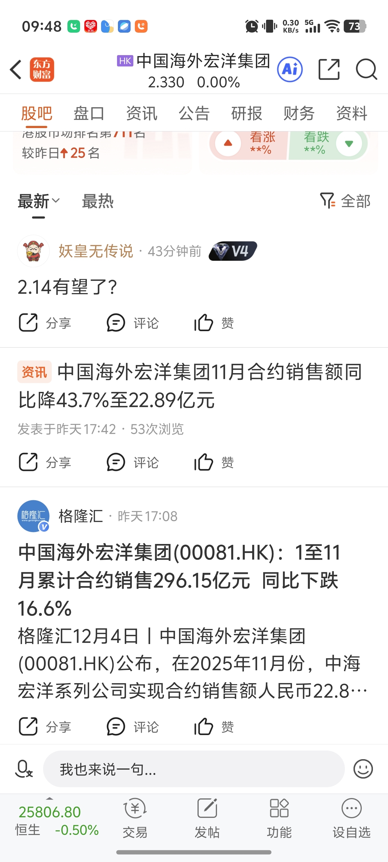 $保利置业集团(HK|00119)$ $中国海外宏洋集团(HK|00081)$ $龙光集团(HK|03380)$ 保利置业集团销售数据今天公布,马上冲五百亿了,聚焦一线超一线城市,市值没有任何理由比中海宏洋和龙光低