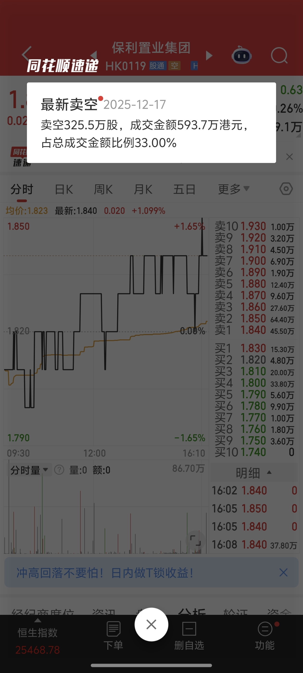 $保利置业集团(HK|00119)$ $保利发展(SH600048)$ $万科企业(HK|02202)$ 外资空空最后的疯狂,天量低价空单随时爆仓,明天继续压,我看你还能要多久,昨天25的做空比例,今天33的做空比例,现在压的有多狠,等到爆仓的时候越刺激,静待房地产大利好