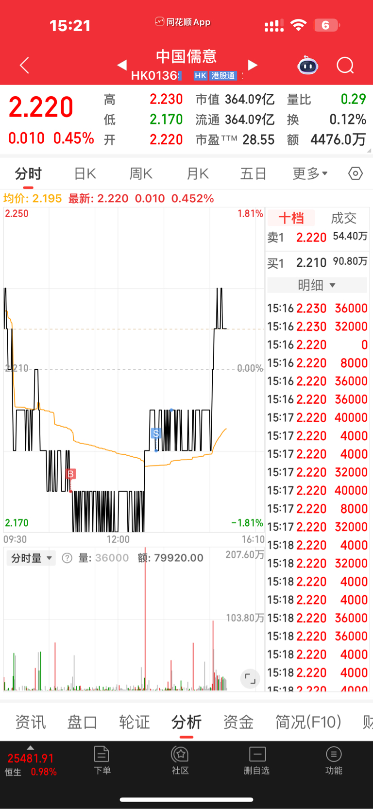 $中国儒意(HK|00136)$ 到三点就拉起来,我是小白,大神们这个到尾盘是不是做空的人进货的?第二天做空?
