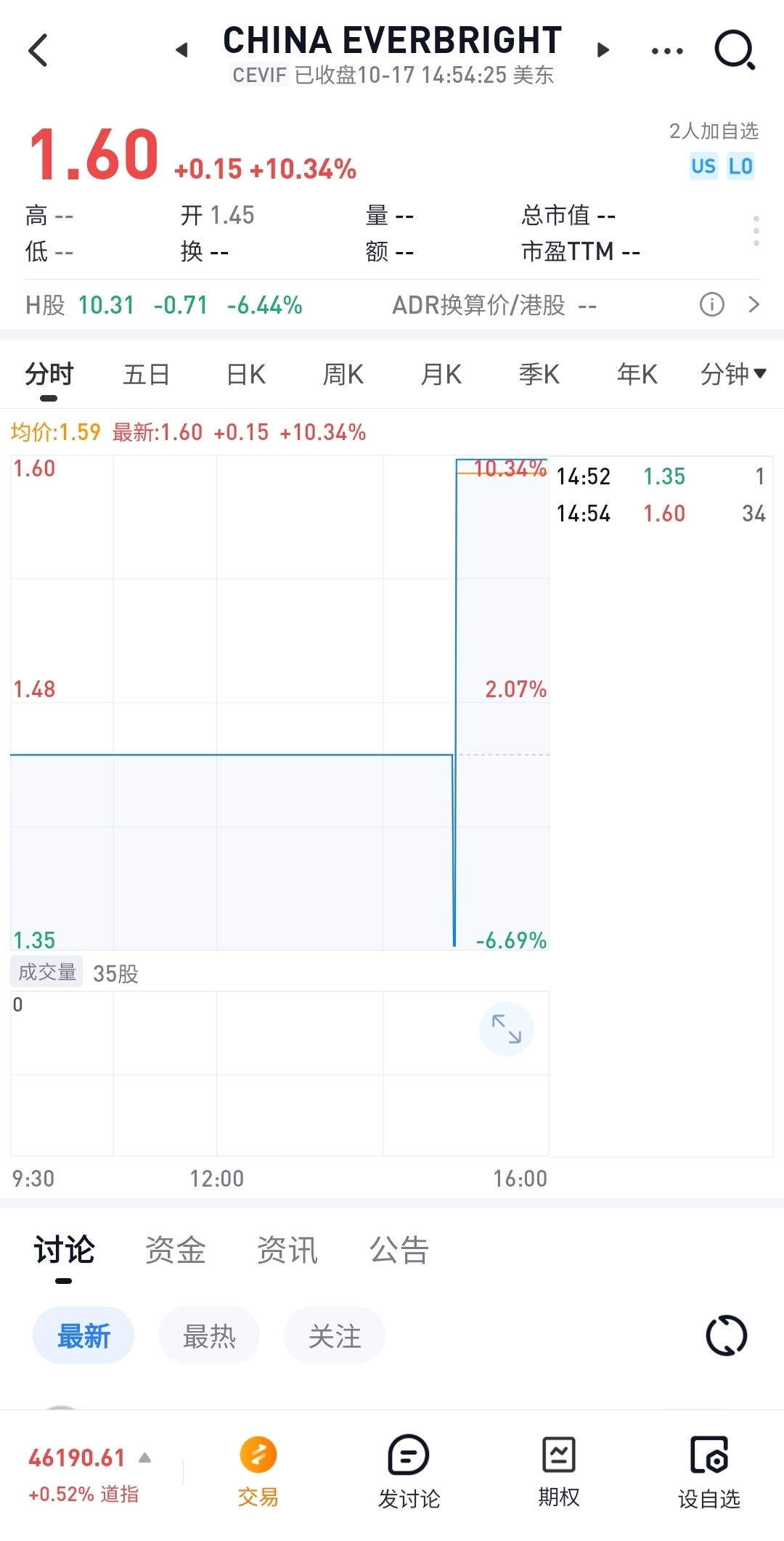 $中国光大控股(HK|00165)$ 这个有成交量了。