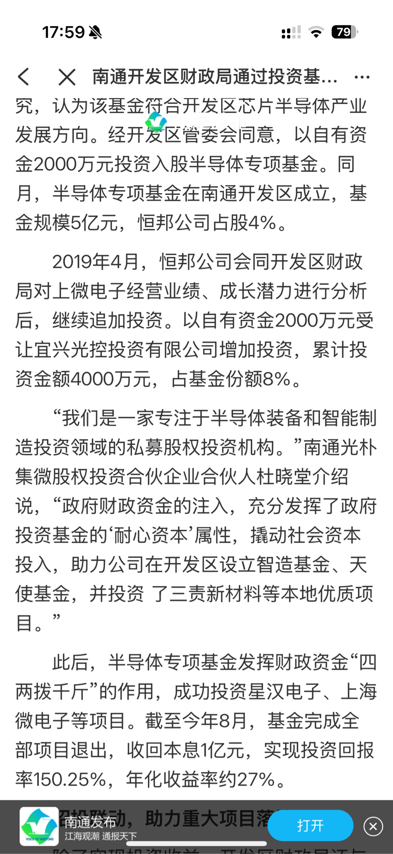$中国光大控股(HK|00165)$ 目前能查到2024年8月,微电子股权还在光大,往后我是真查不到了,通过南通光朴集微股权投资合伙企业代持。有没有老哥助力一下,南通市持有8%该基金,投4千万回报1个亿。光大管理该基金,持有大概50%,剩下40%股份有财政部,招商局,深圳市等其他地方政府。来个老哥助力一下,剩下的股份去哪里了,还有个问题南通光朴持有多少微电子股份
