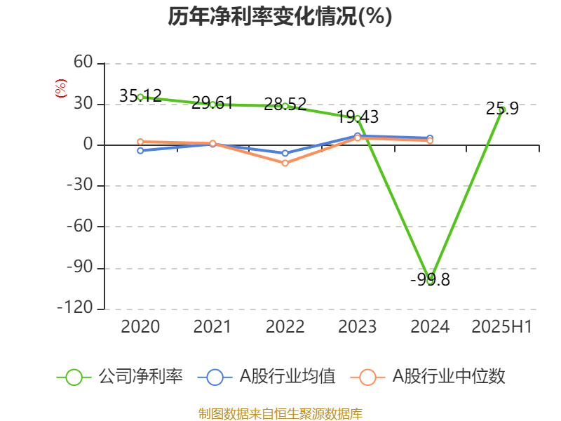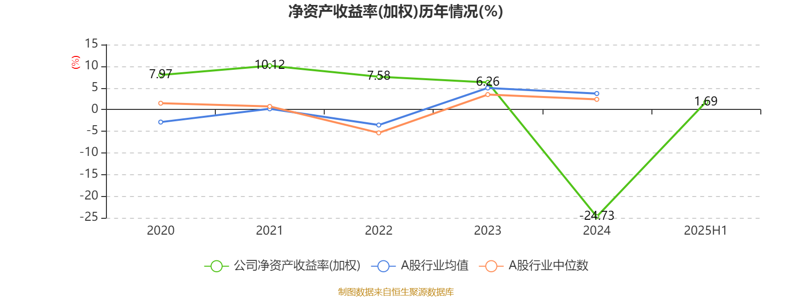 2025年上半年,公司平均净资产收益率为1.69%,较上年同期上升22.76个百分点。