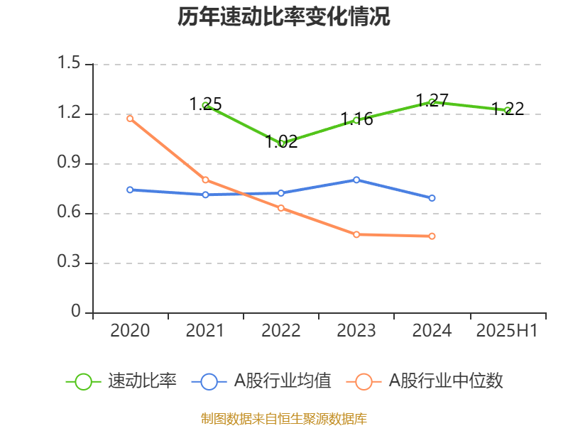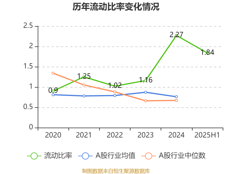 2025年上半年,公司流动比率为1.84,速动比率为1.22。