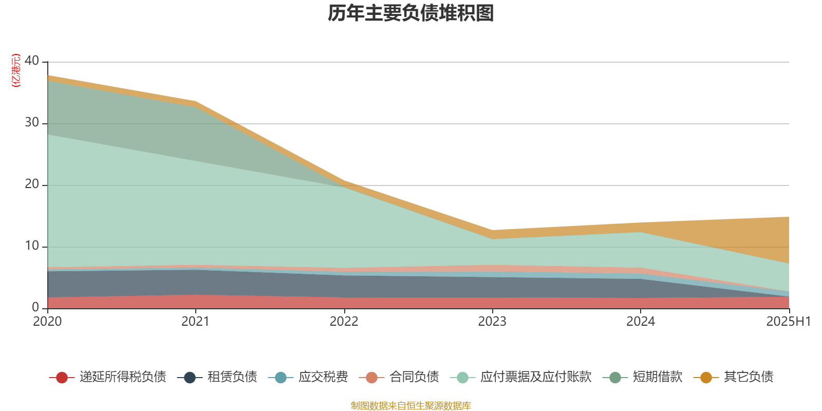 负债重大变化方面,截至2025年上半年,公司租赁负债较上期末减少99.3%,占公司总资产比重下降8.51个百分点;应付票据及应付账款较上期末减少21.21%,占公司总资产比重下降3.92个百分点;合同负债较上期末减少100%,占公司总资产比重下降2.68个百分点;递延所得税负债较上期末增加11.11%,占公司总资产比重上升0.31个百分点。