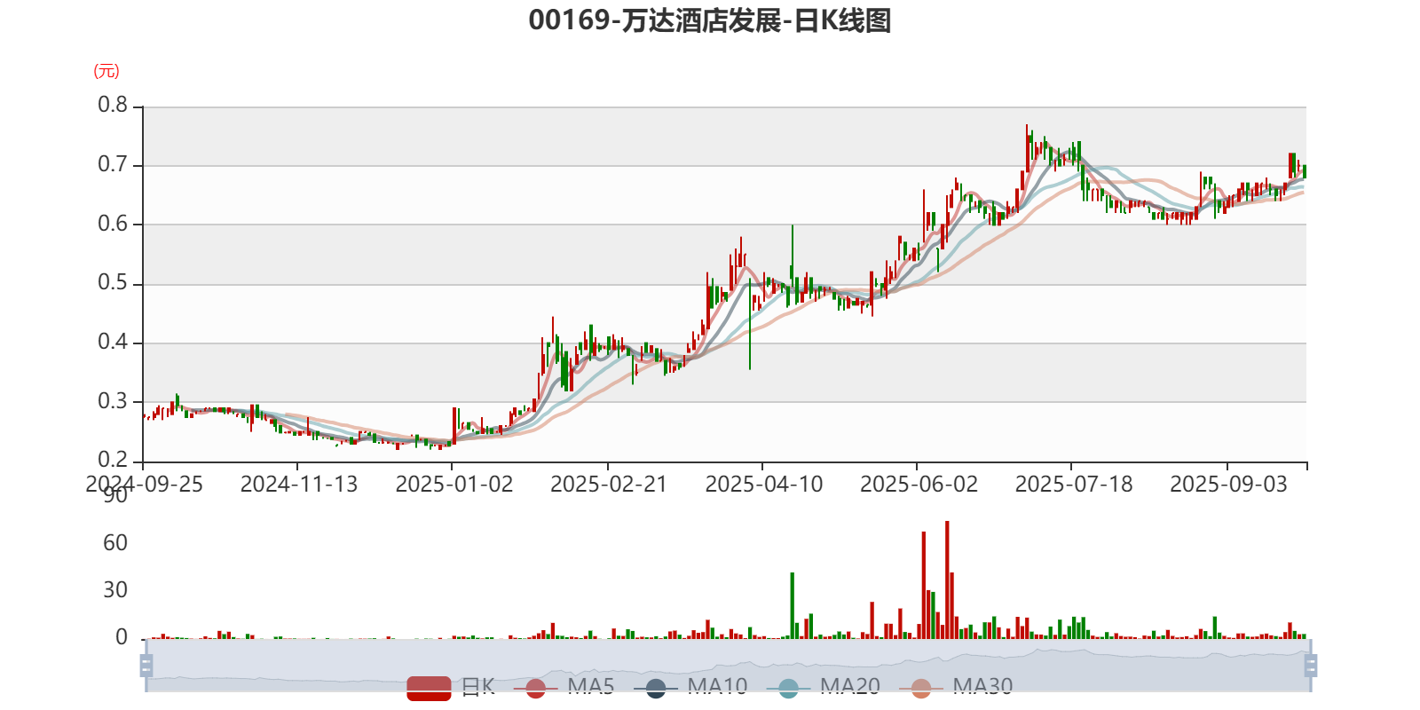 中证智能财讯万达酒店发展(00169)9月25日披露2025年中期报告。报告期内,公司实现营业收入5716.4万港元,同比增长21.07%;归母净利润3563.9万港元,同比扭亏;据报告显示,万达酒店发展基本每股收益为0.008港元,平均净资产收益率为1.69%。