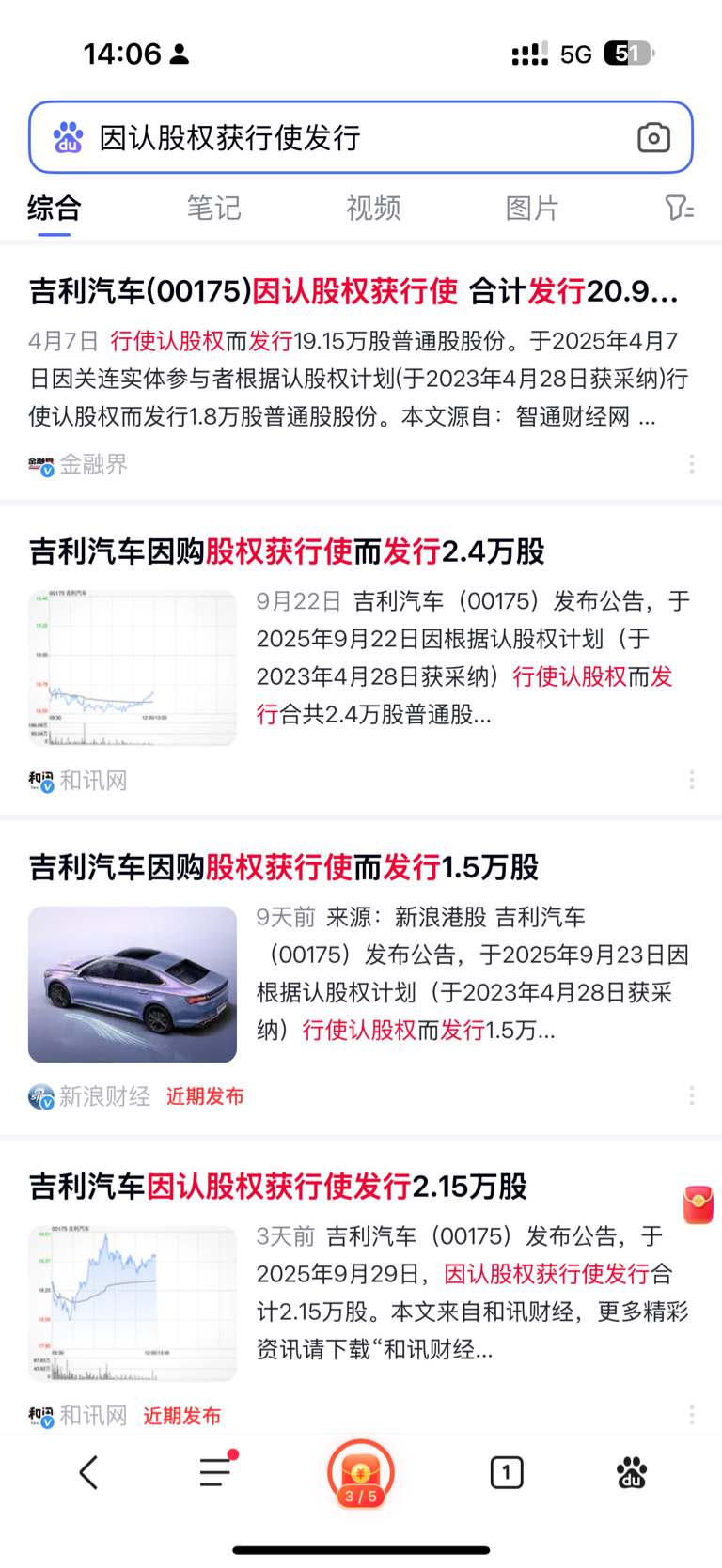 $吉利汽车(HK|00175)$ 去百度了一下《因认股权获行使》,全是吉利的新闻…