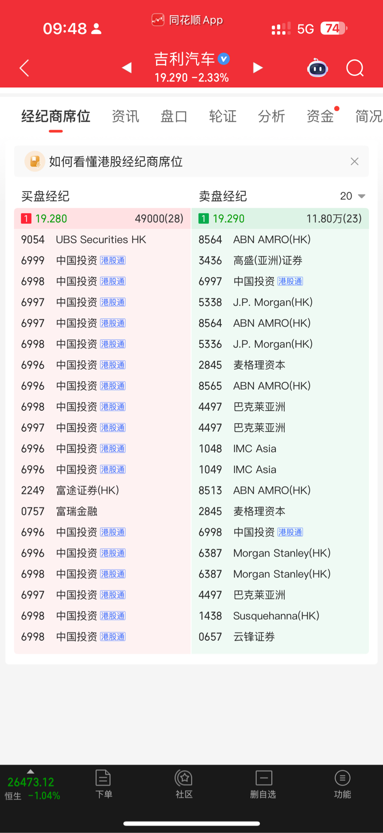 $吉利汽车(HK|00175)$ 买一 全是港股通的散户…