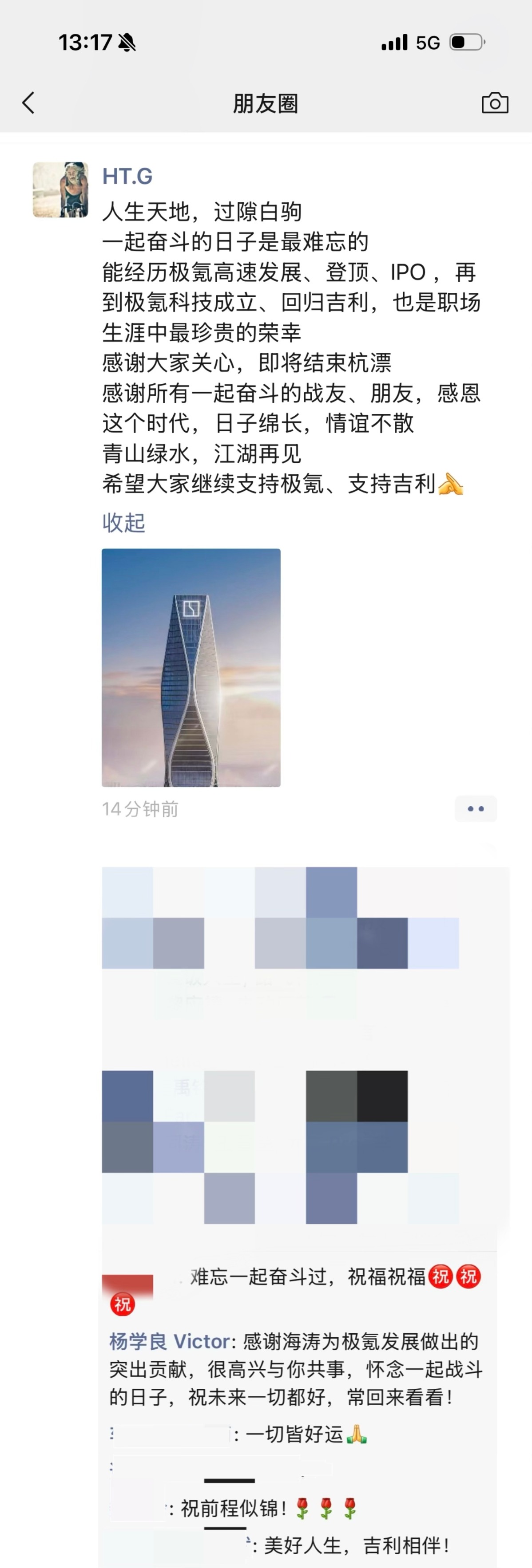 10月10日,极氪科技集团原首席商务官(CBO)关海涛通过朋友圈确认离职,以“家庭原因结束杭漂”为由正式告别,同时公开呼吁各界持续支持极氪与吉利品牌。吉利集团高级副总裁杨学良在评论区的祝福回应,进一步坐实了这一消息。