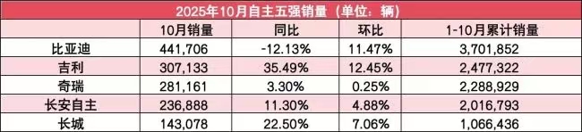 自主车企“银十”销量战报看点满满!比亚迪10月44.1万辆,同比下滑12.13%