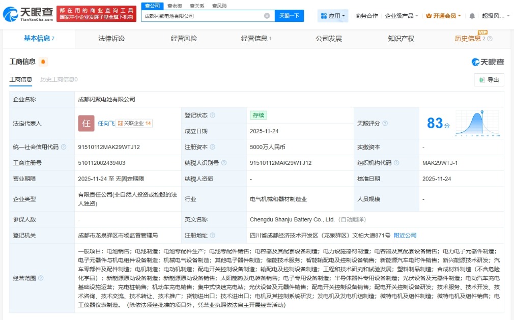 吉利在成都成立闪聚电池公司