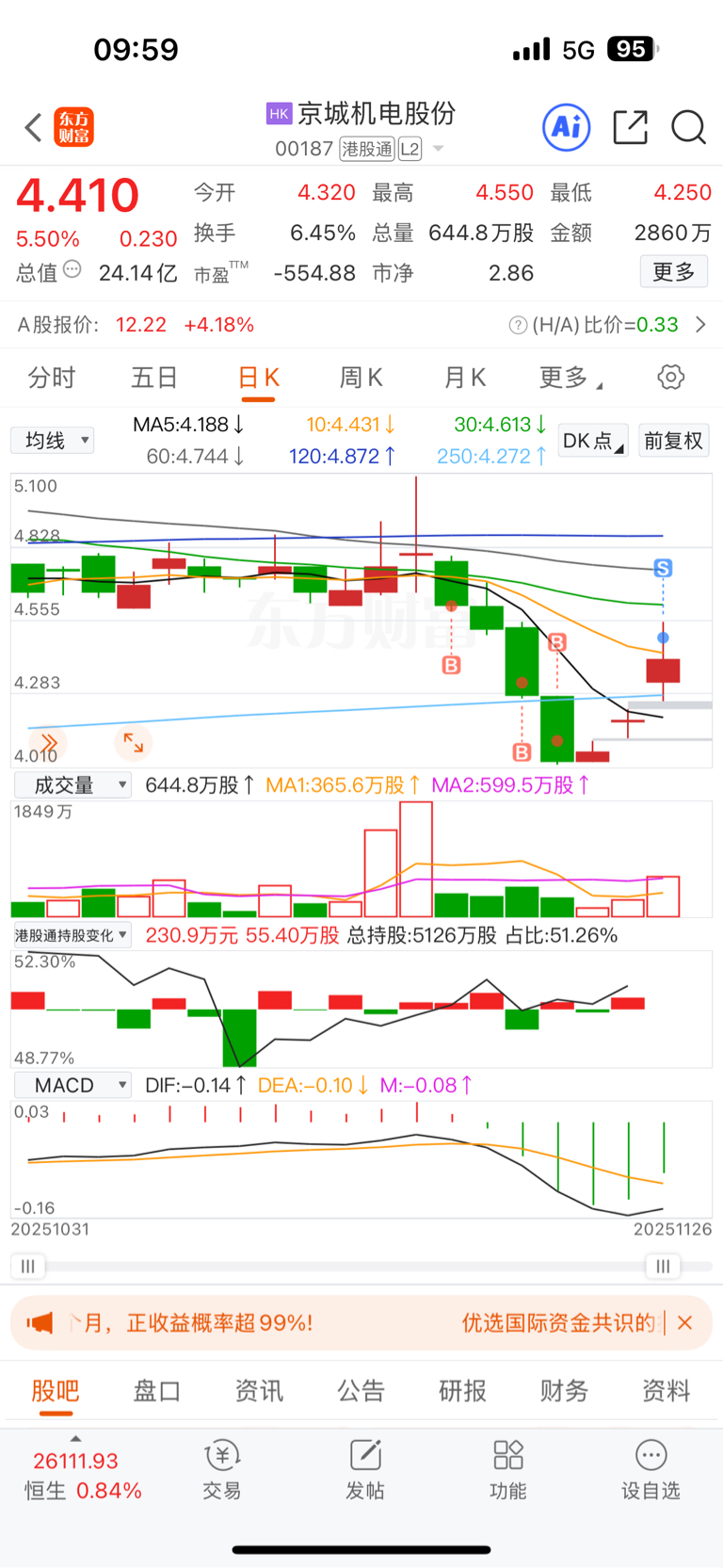 $京城机电股份(HK|00187)$ 一直在自选里几个机器人放一起,时不时有神经一拉,怕了,回本走了。