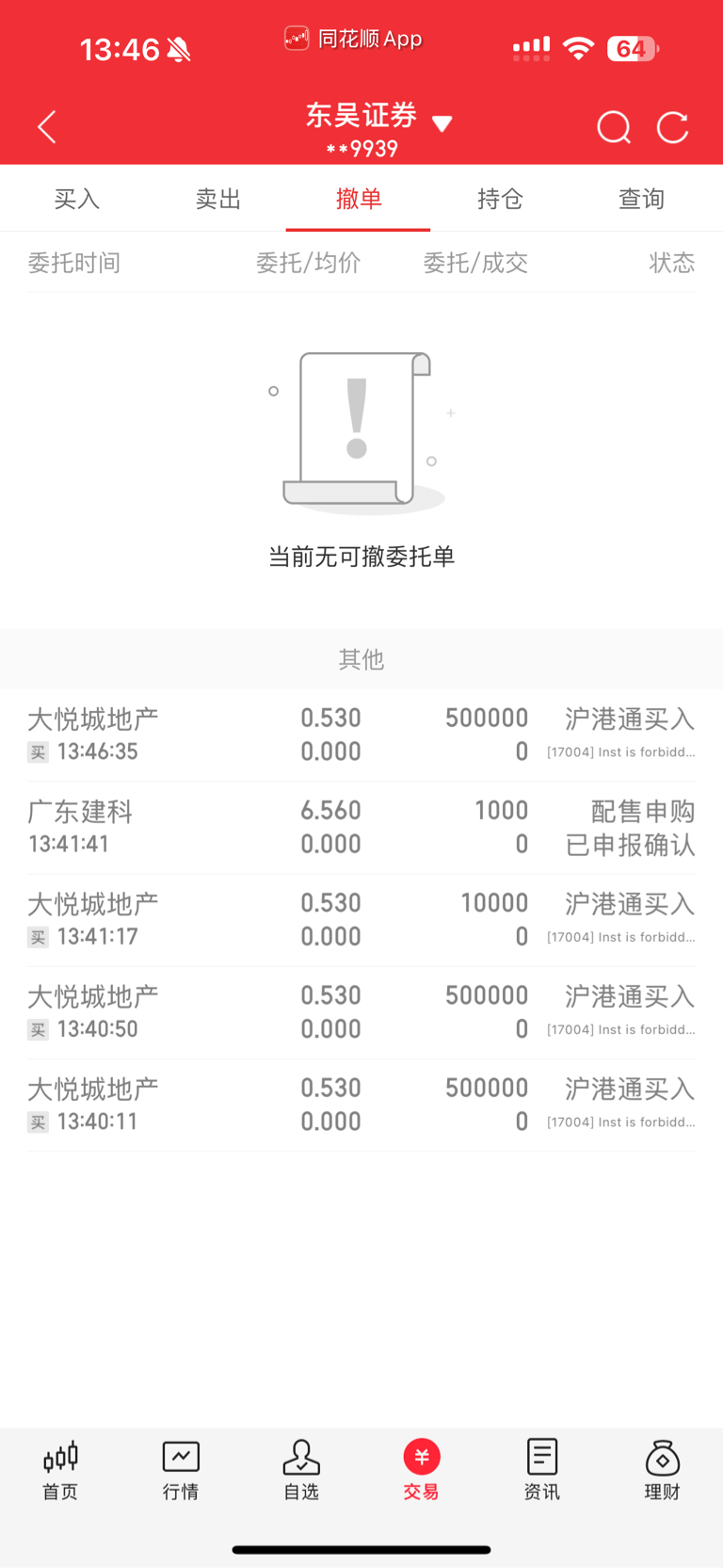 $大悦城地产(HK|00207)$ 为什么我买不了啊?