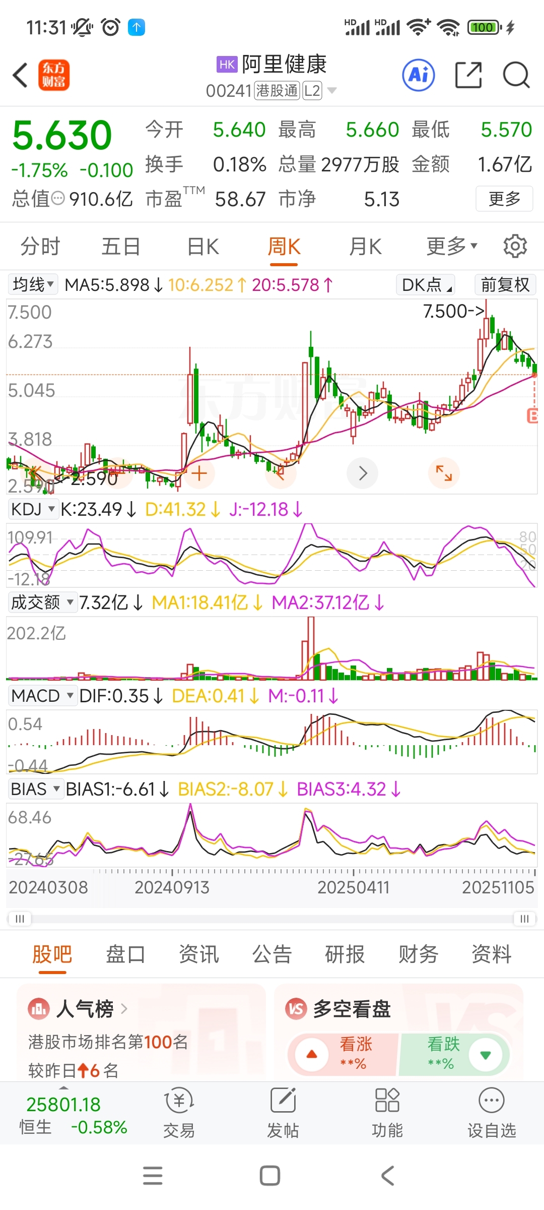 $阿里健康(HK|00241)$ 兄弟们不看线吗?先建个底