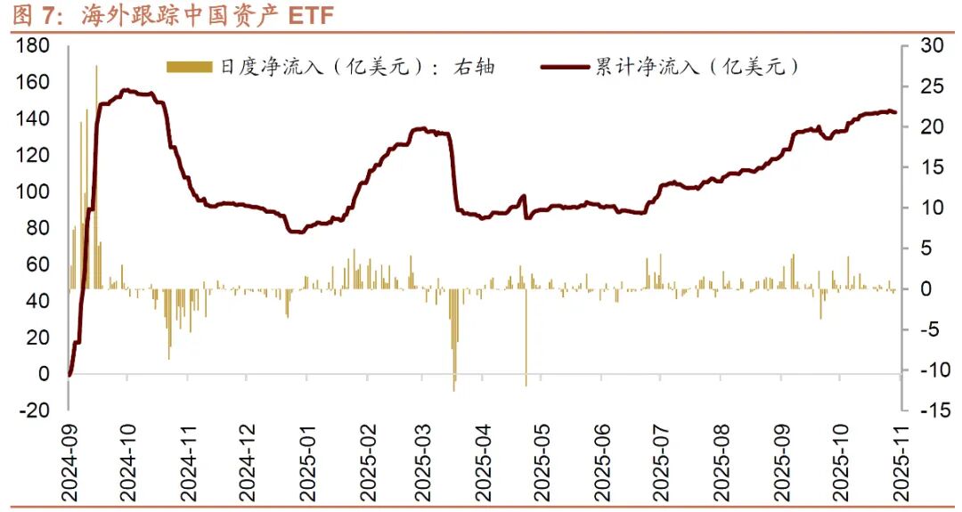 微观资金面:港资、南向净流入,外资小幅净流出。1)南向资金合计净流入386亿港元,主要流向资讯科技、非必需消费方向;2)外资通过ETF净卖出0.2亿美元,924以来净流入143.4亿美元;3)香港本地ETF净流入45亿港元,年初至今合计净流入646亿港元。