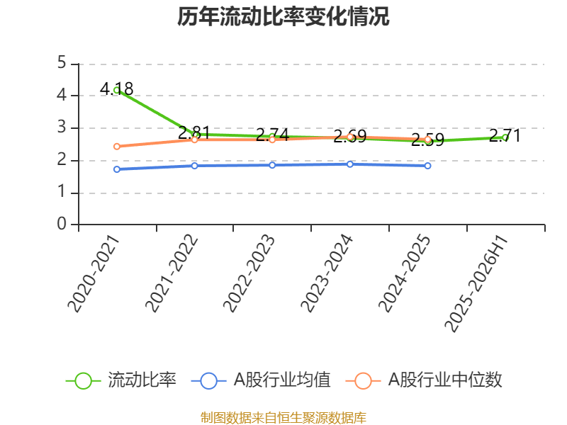 报告期内,公司流动比率为2.71,速动比率为2.34。