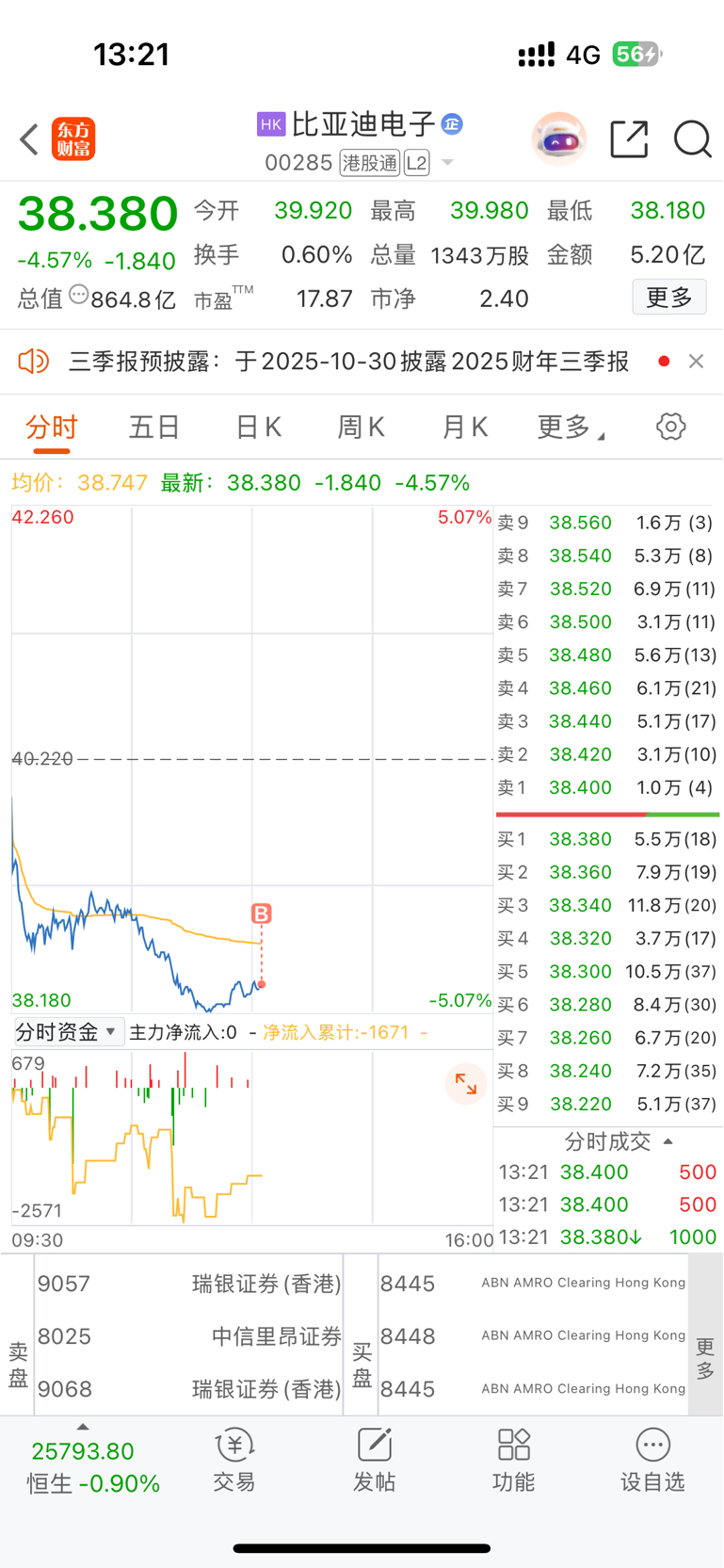 $比亚迪电子(HK|00285)$ 下跌就是机会,再次补仓8000股!