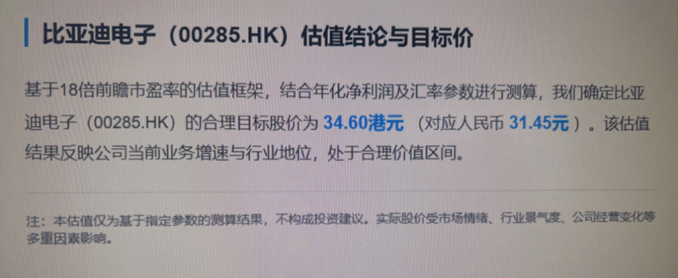 $比亚迪电子(HK|00285)$ 本来尾盘想再买五千股的,无意看到这个预测,给出的目标价34港元
