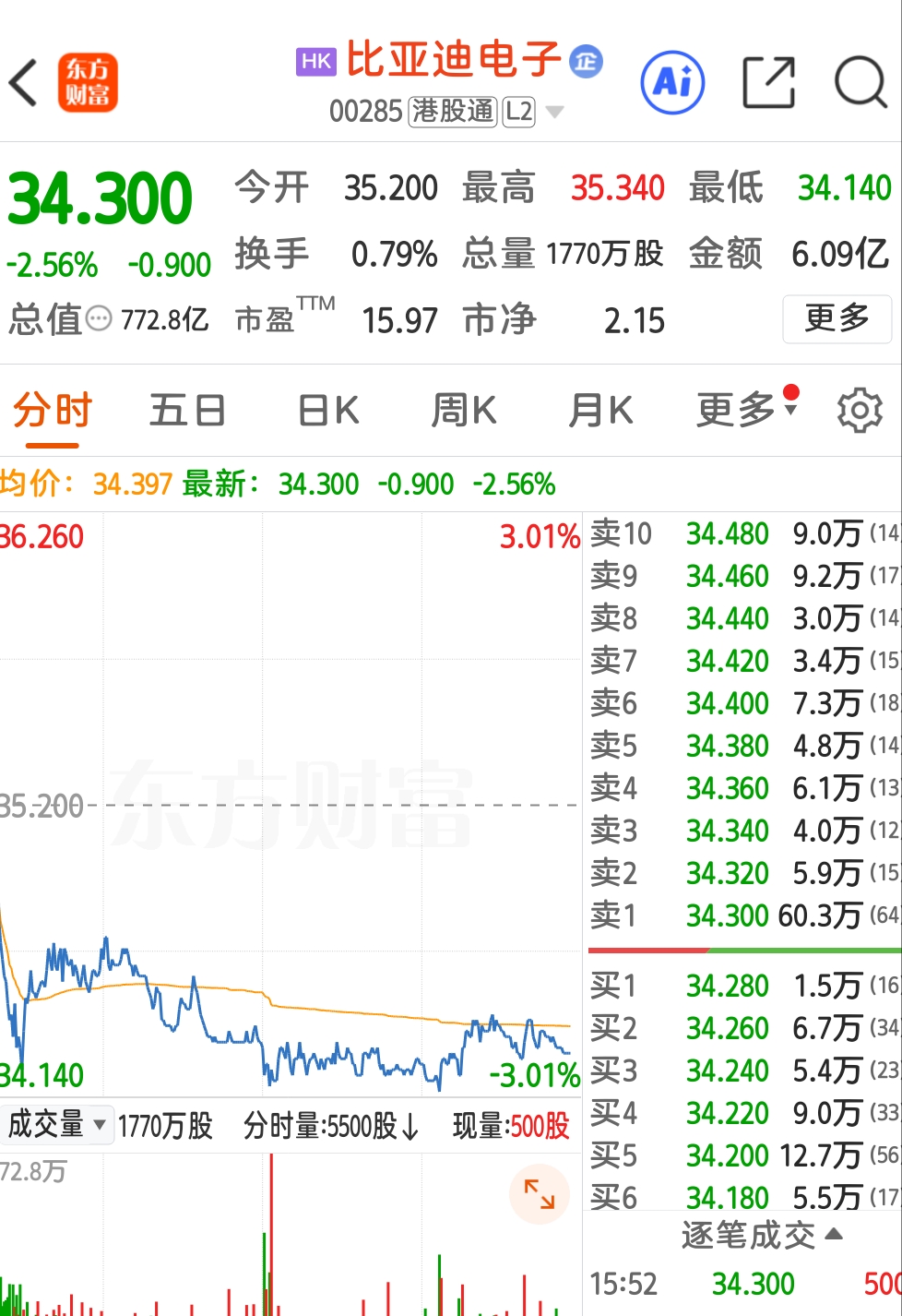 $比亚迪电子(HK|00285)$ 为什么还不跑,摆明做空