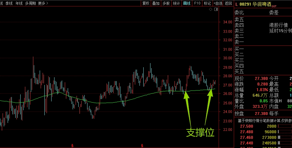 $华润啤酒(HK|00291)$ 中期趋势不强,整体上往下回落的趋势,近期主要是看脚底大均线26.550位置的支撑情况,能稳住就行,兜不住就要注意破位的回落风险,需要控制仓位应对。#炒股日记# #周末杂谈#