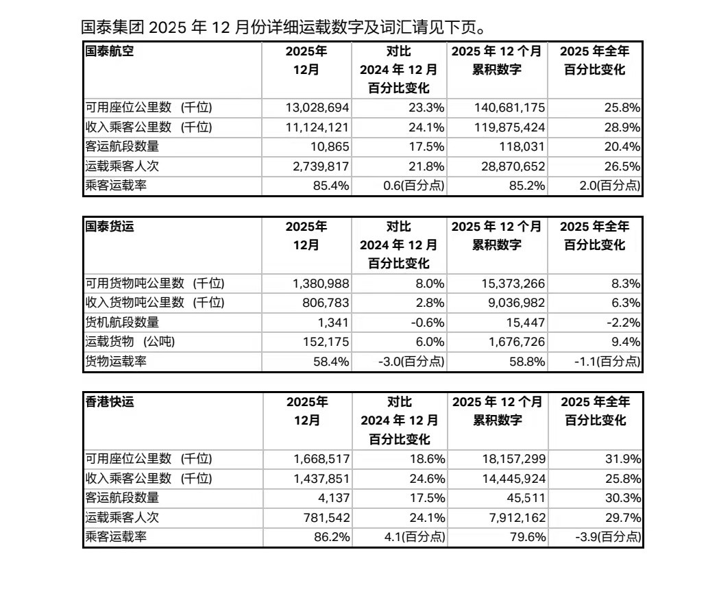 年终出行高峰促进稳步增长 国泰集团公布2025年12月客货运量