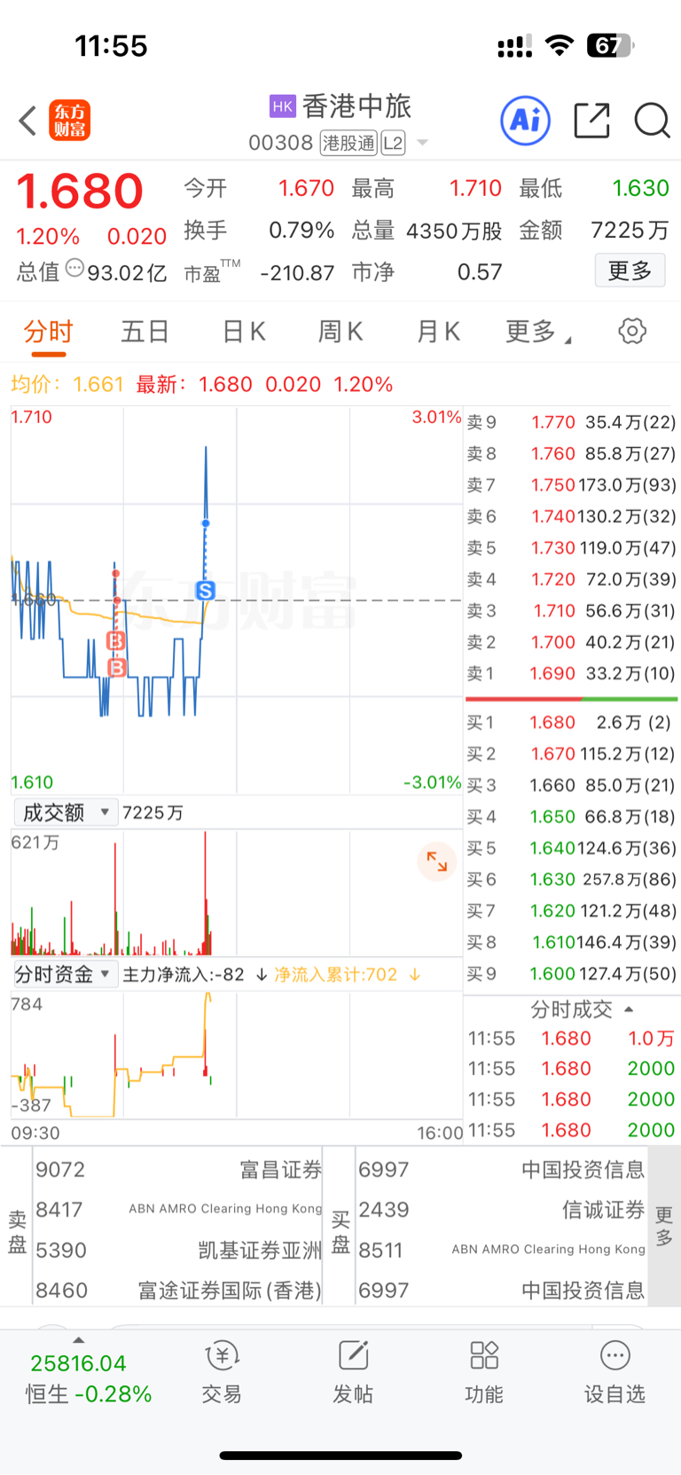 $香港中旅(HK|00308)$ 点火失败,又被家人们救了!感恩,不亏就挺好!祝你们发财!
