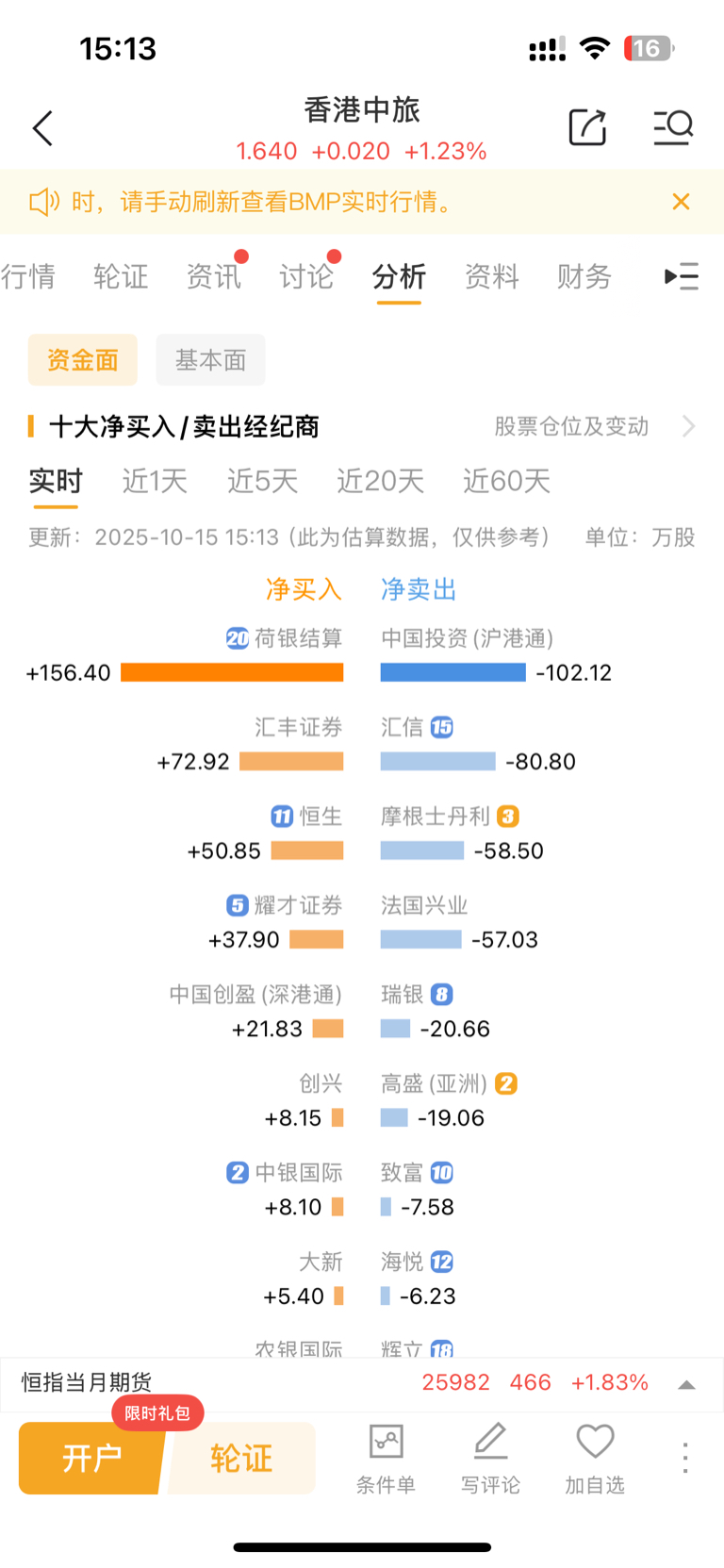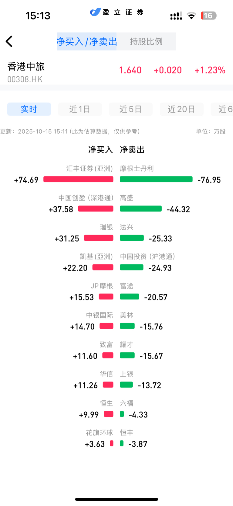盈立的经纪商席位显示外资港股通都在做t!华盛的席位显示外资买入,港股通卖出!我觉