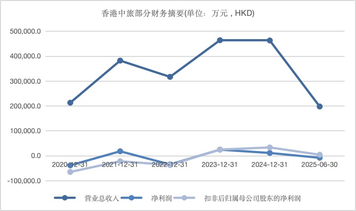 界面新闻整理公司近年财报发现,香港中旅此次拟剥离的旅游地产业务在2023年、2024年及2025年上半年收入持续萎缩,分别为6.3亿、4.6亿和1.5亿港元,净利润则连续亏损,分别为-4.6亿、-2.4亿和-1.9亿港元,三年累计亏损接近9亿港元。