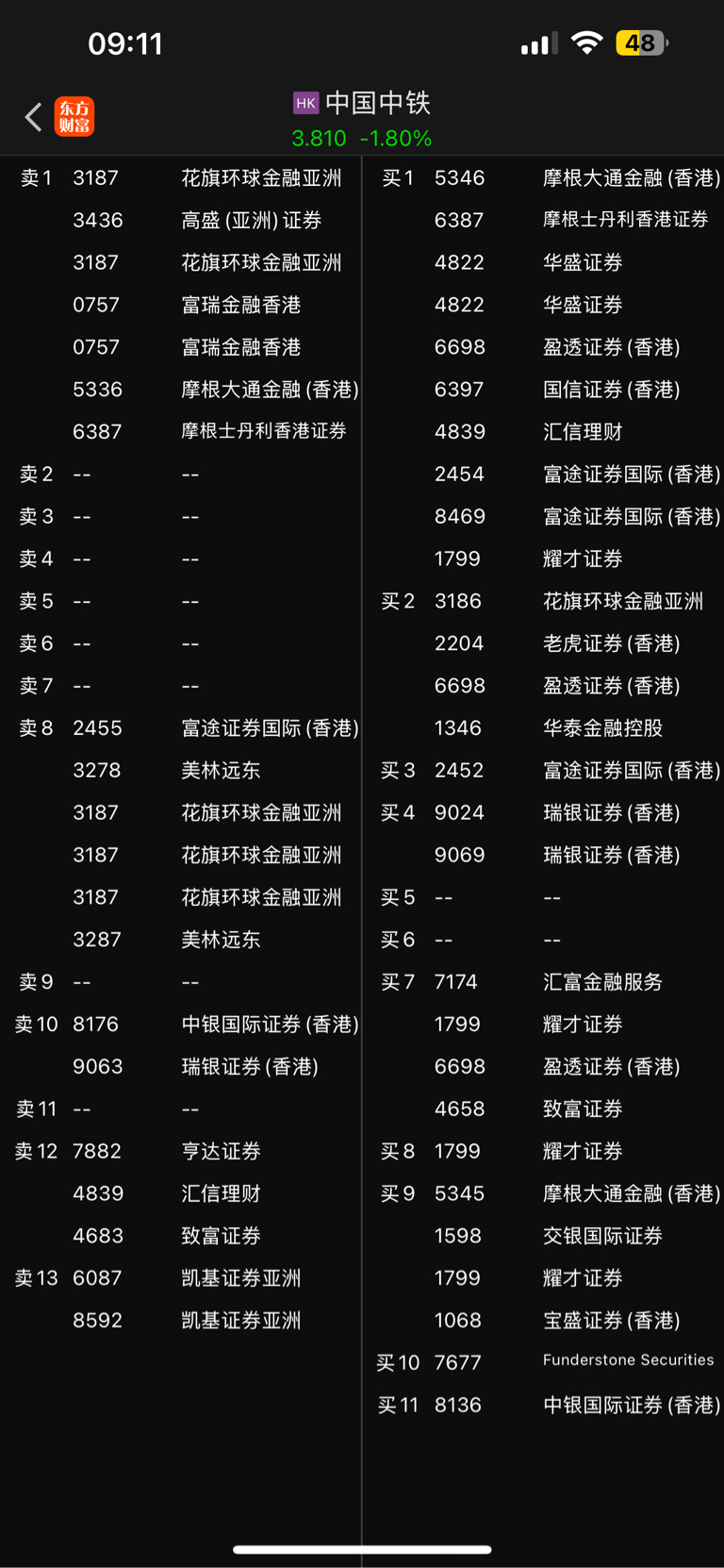 $中国中铁(HK|00390)$ 对倒砸盘,高盛、摩根