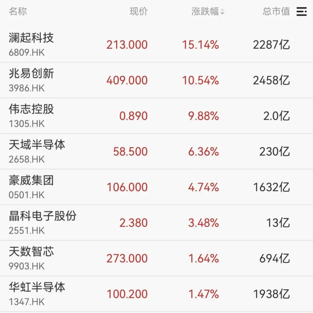 港股存储概念股多数走强,澜起科技涨超15%,兆易创新、天域半导体、豪威集团等涨幅居前。