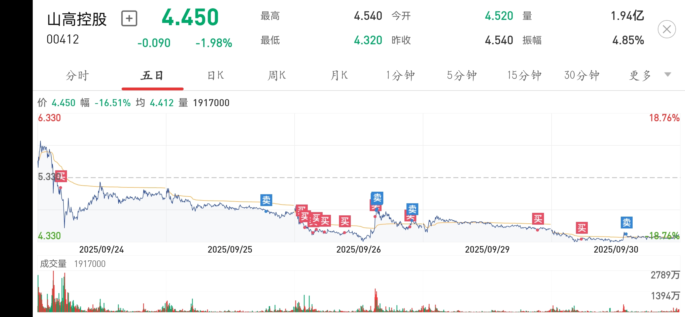 $山高控股(HK|00412)$ 提醒最近抄底的,千万不要幻想,有机会赶紧做T,这股还会下探,千万千万注意风险,底仓不动,活动仓看情况灵活做T,最后别满仓,跌的时候你才有资格抄底