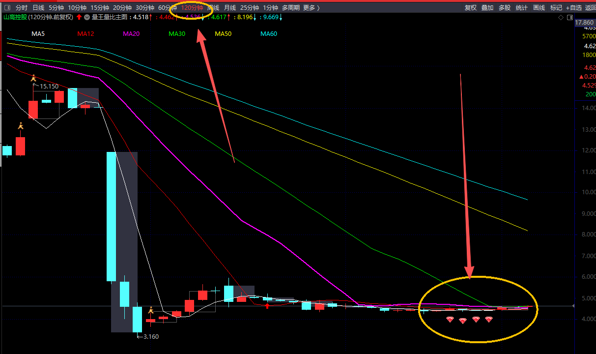 为何要看120分钟线?因为这个分钟线昨天连续出现了四个底部彩贝信号,看图……