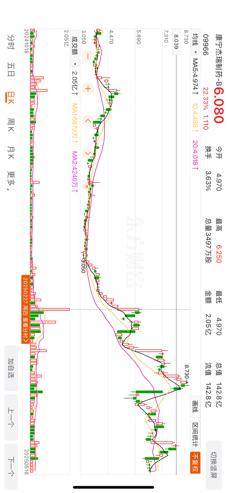 康宁杰瑞制药-B公布被剔除恒生综合指数的第二天涨了22.33%。当时股价6.08
