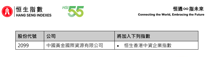另外,中国黄金国际将加入恒生香港中资企业指数,有关变动将于10月27日(星期一)生效。受此影响,中国黄金国际10月9日走高,截至13点13分,该股报150.5港元/股,涨5.99%,成交7.25亿港元。