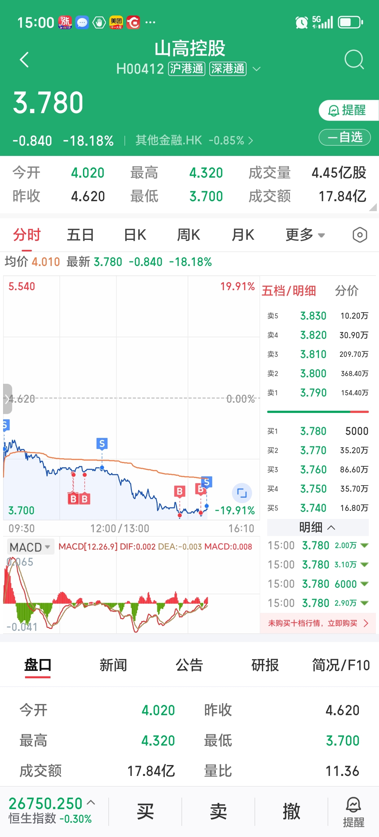 $山高控股(HK|00412)$ 啦啦啦啦,亏损1万都没到还能接受明天找低点做反弹