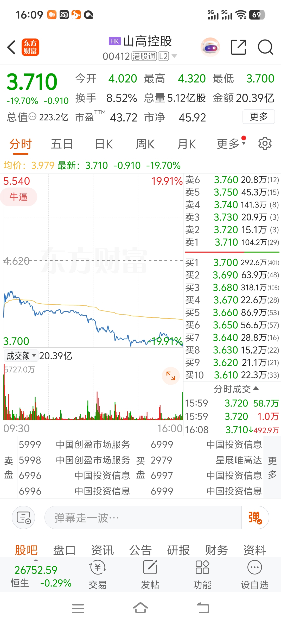 尾盘竞价,卖出的都是大单。港股通小散还在勇敢的买入